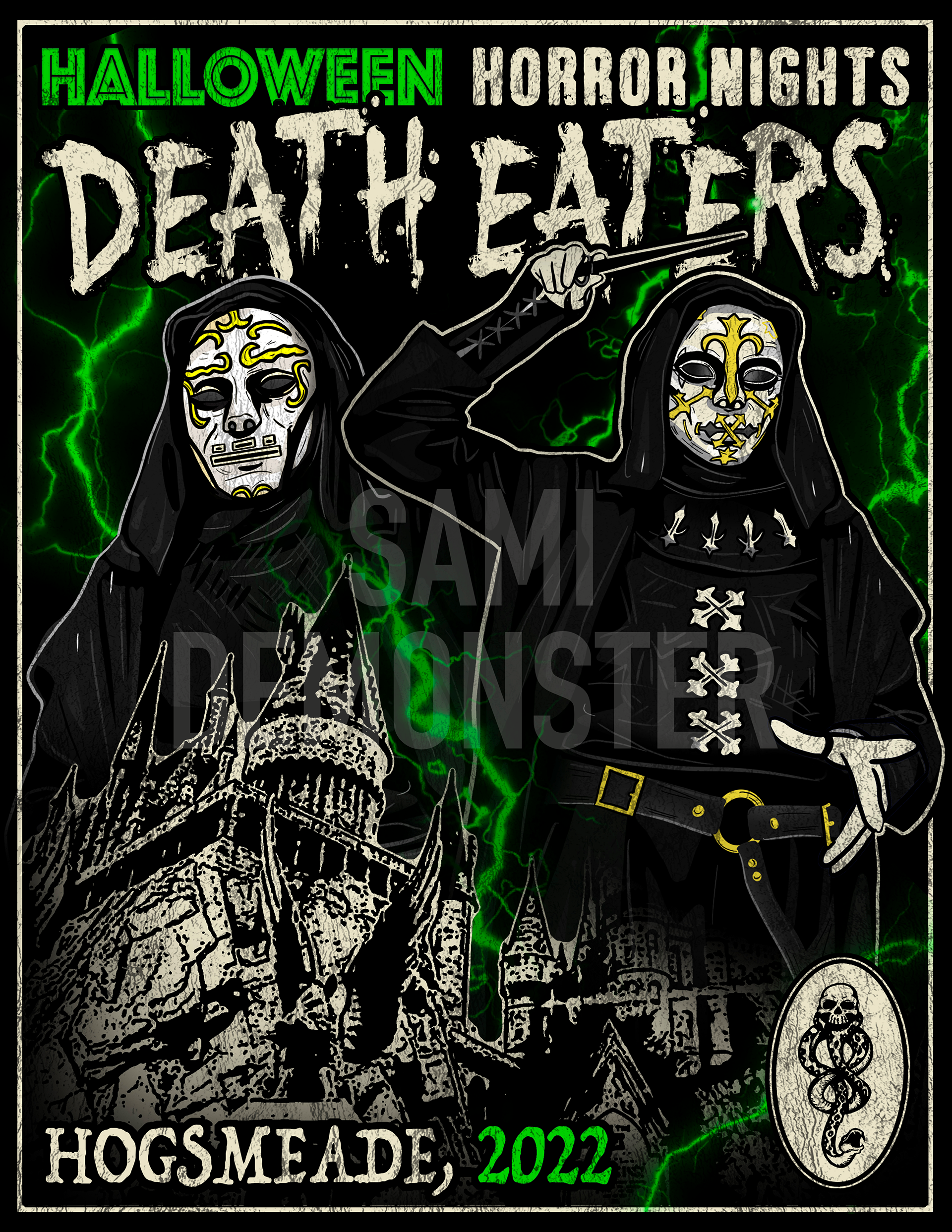 Digital. Poster and Cast T-Shirt design for Death Eaters at Halloween Horror Nights 2022